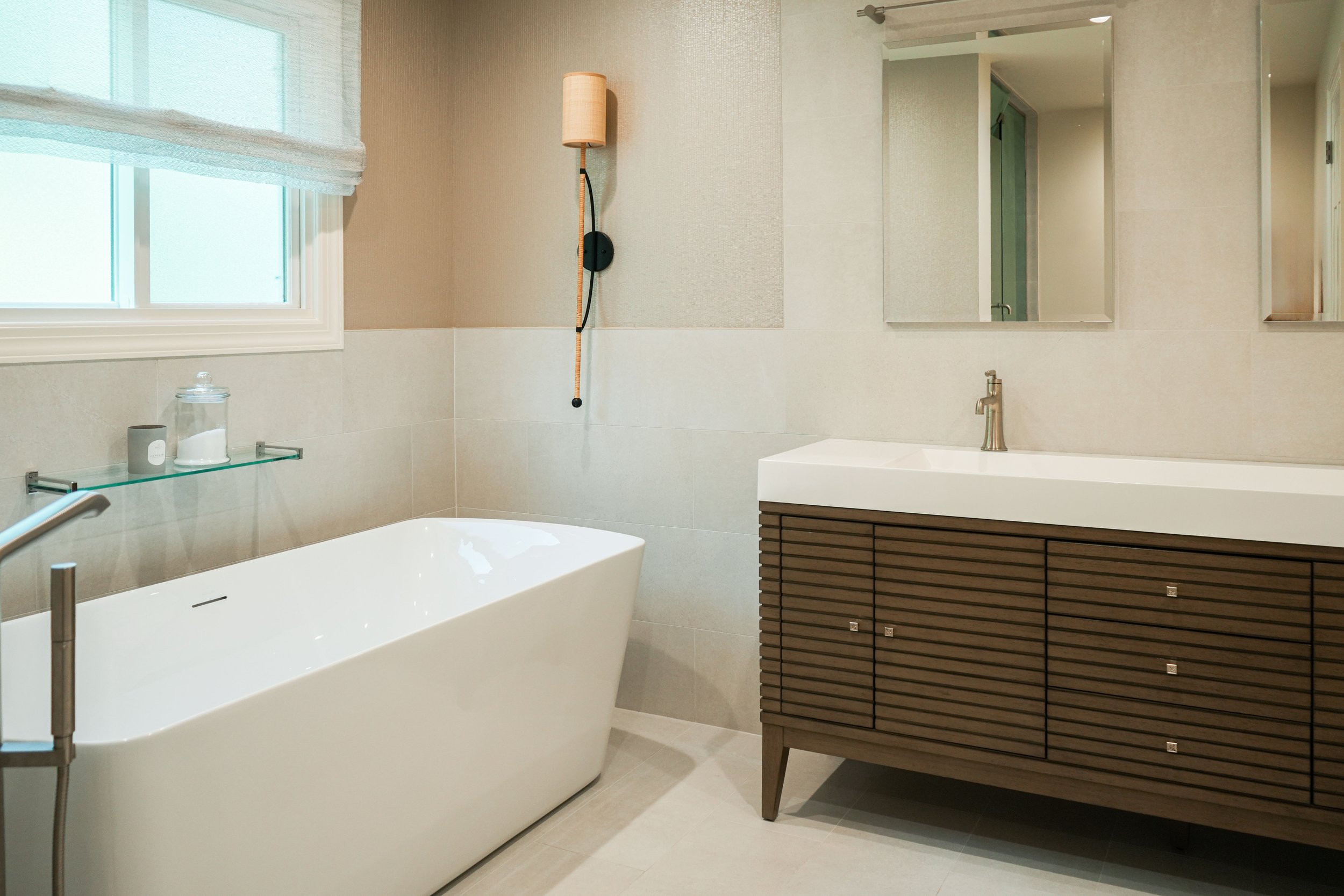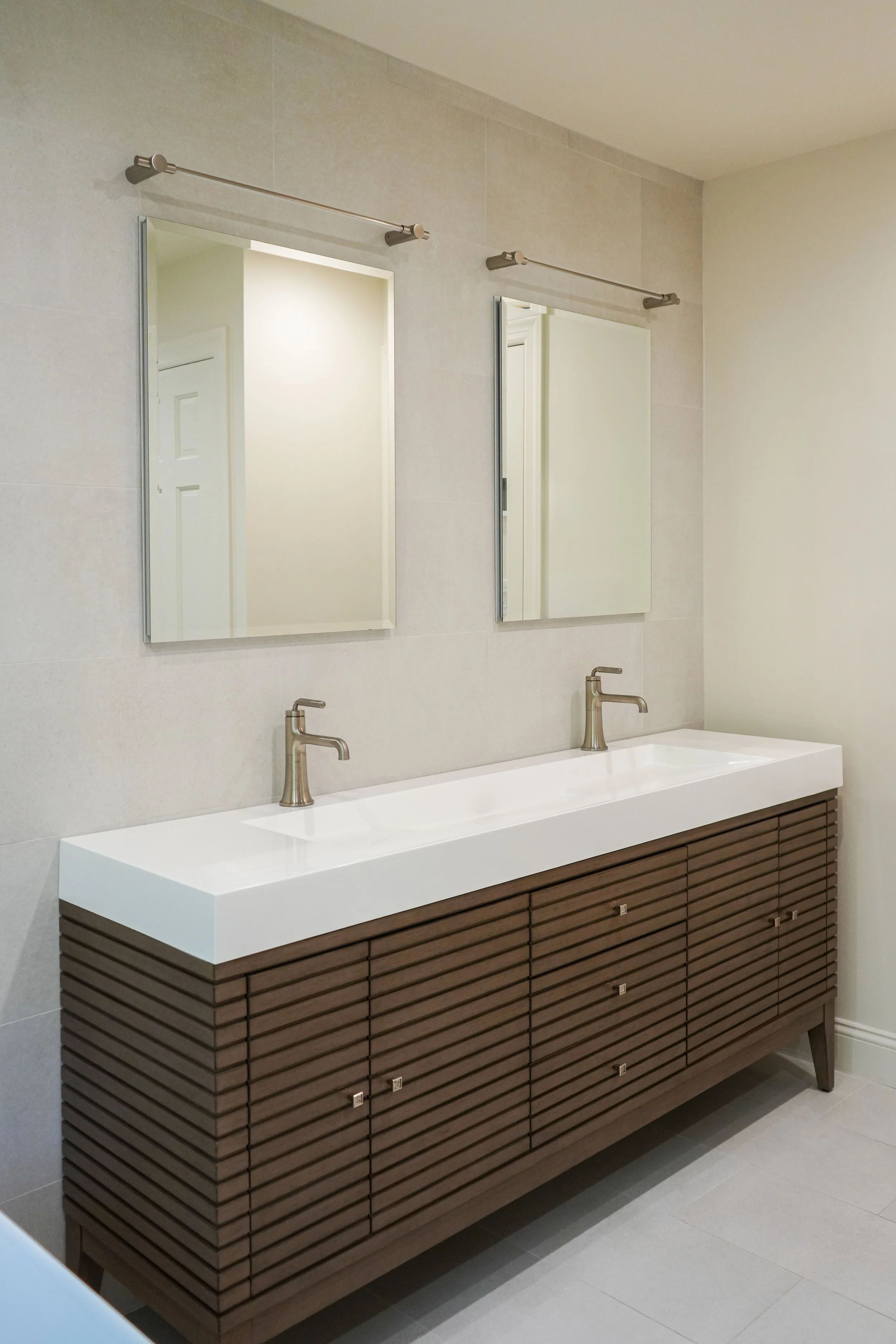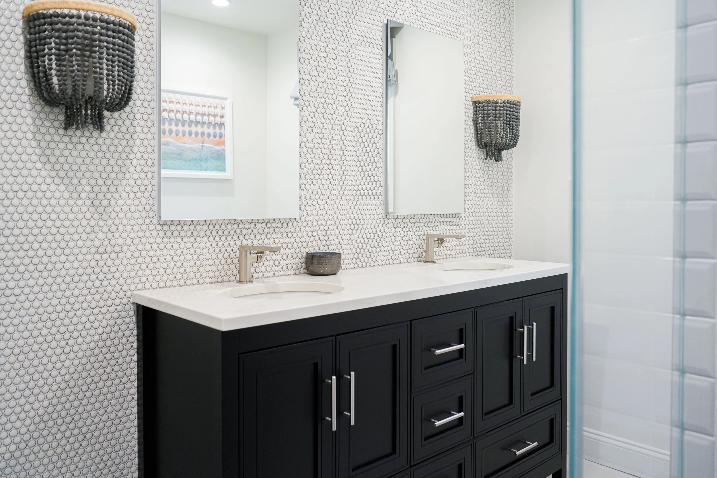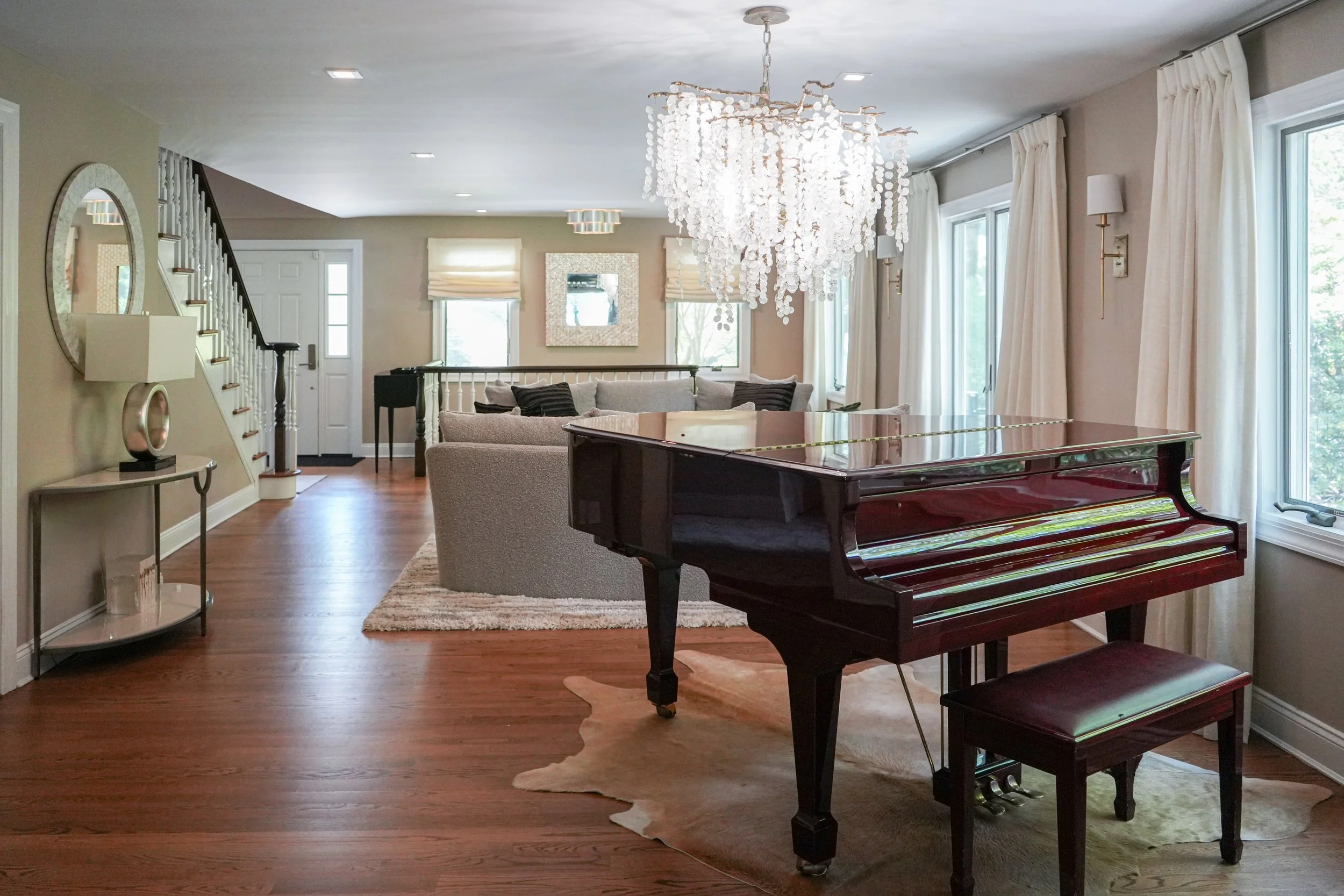 We love working with this fun and bustling family of five (plus pets!) on their rambling home in the woods. Set against a verdant background of trees, spacious lawn, and pool grounds, this home had great bones but no furniture. The project started when we were called by the builder to help with a bath remodel, but ultimately grew into us designing every living space from the primary suite to the family living spaces, to the exterior kitchen, and patios beyond.
