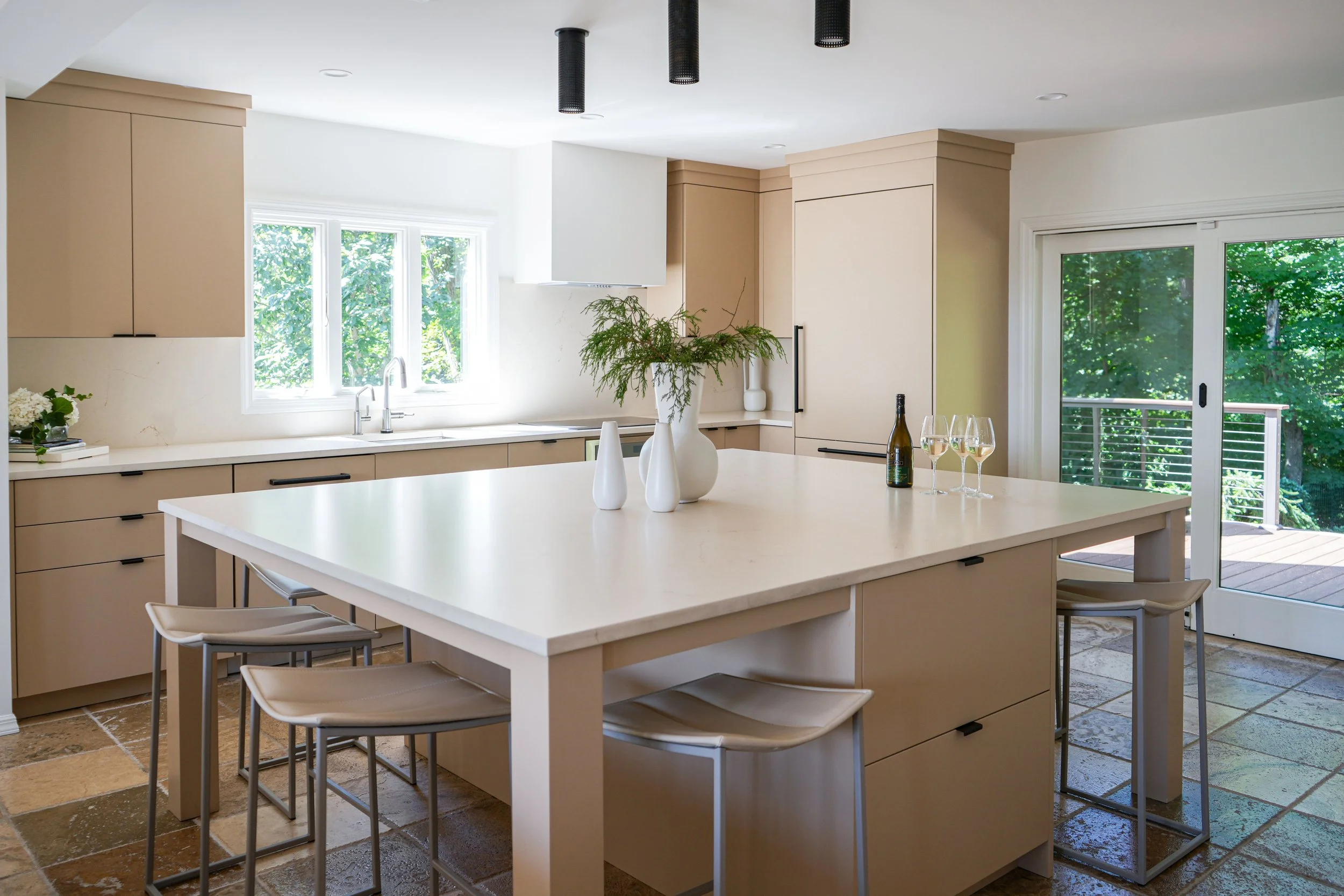 We created a modern, clean-lined culinary haven where our sophisticated clients and their guests could converge around an island mecca.
