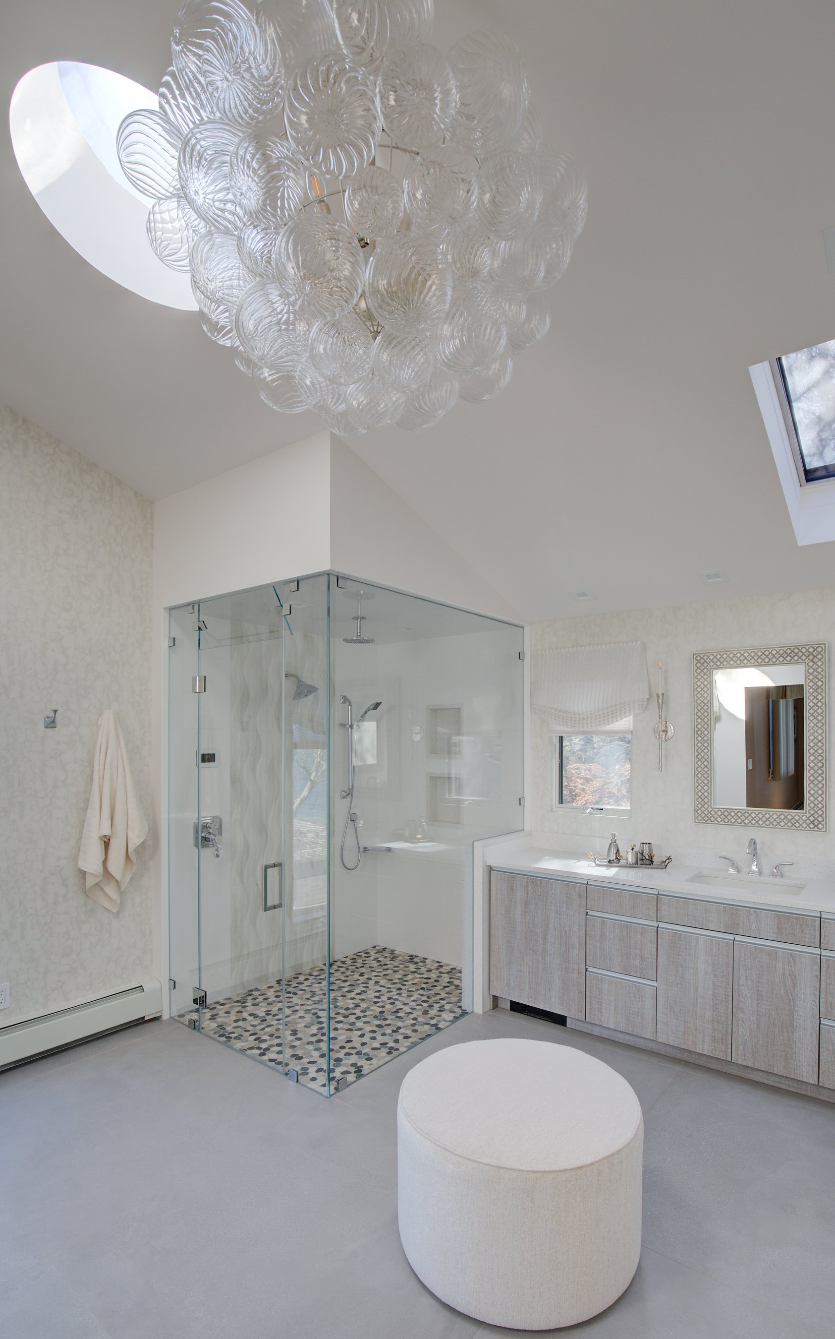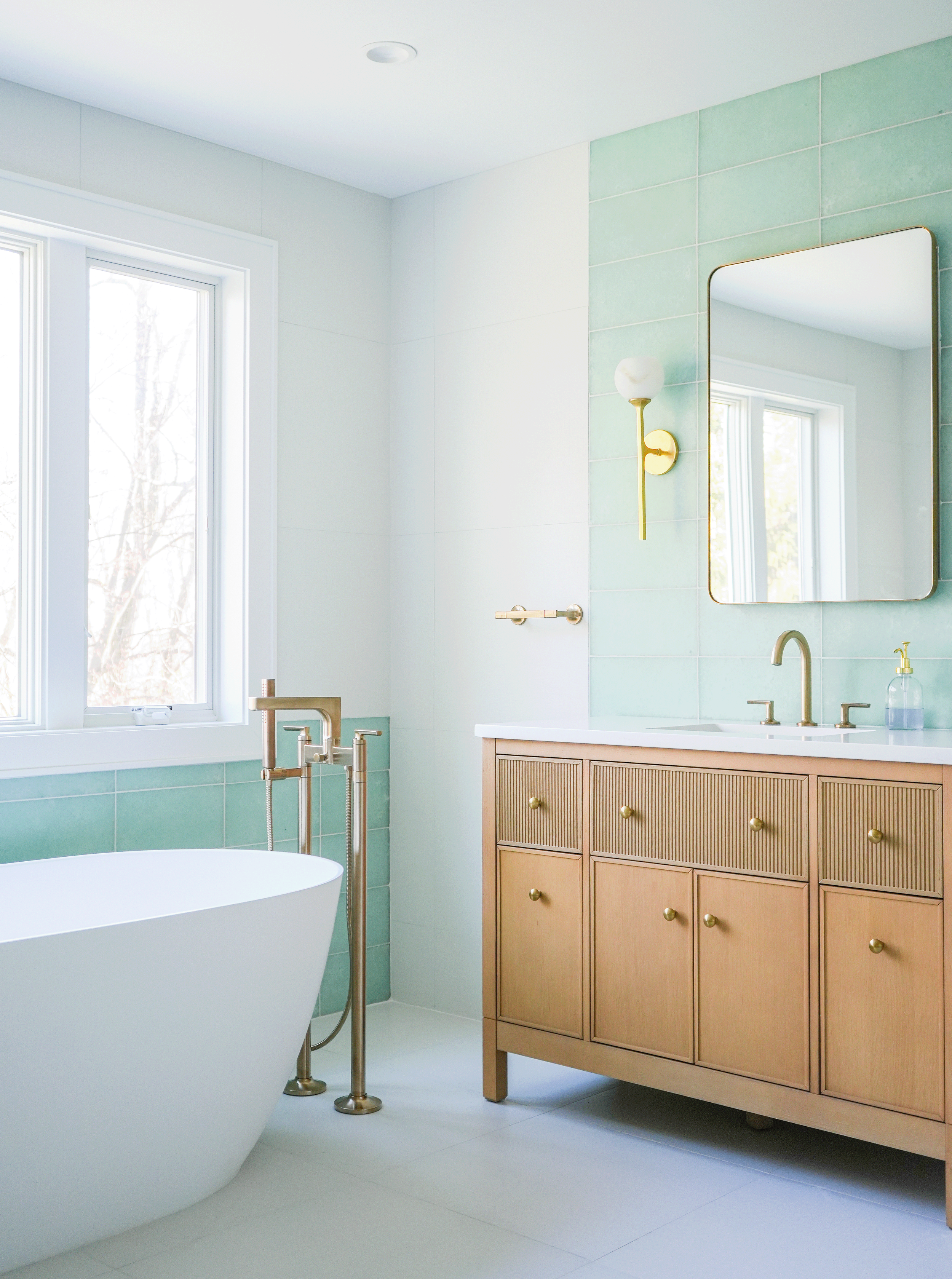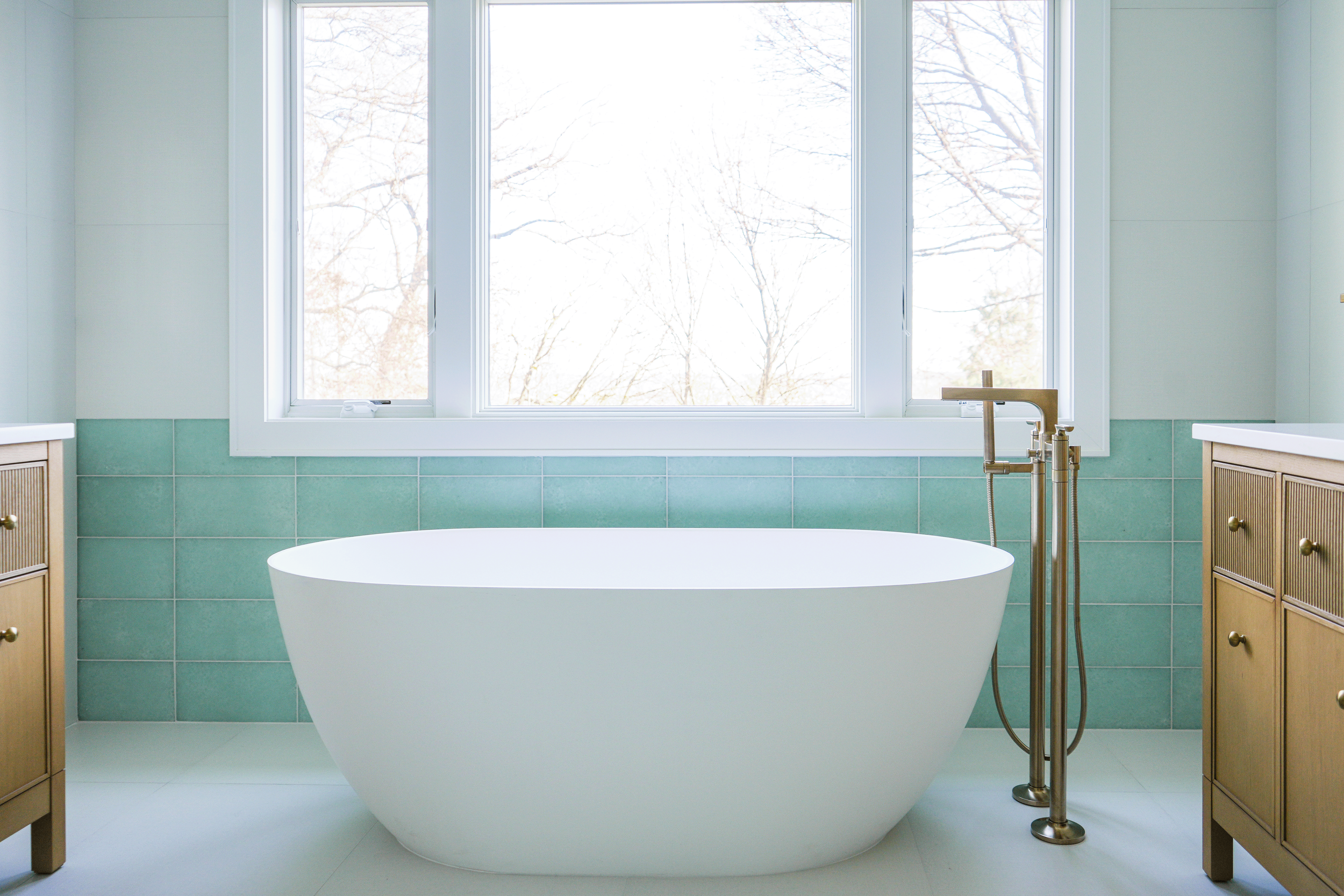 My favorite soaking alcove tub is one that is 19 or 20 inches high and not overly long. Freestanding tubs are often higher, and thus a bit trickier to get into. It’s helpful to have your toes easily touch the far side of the tub, so a 60 to 66 inch tub is plenty long enough if you are a female of average height. For taller clients, we will sometimes go as long as 72 inches. Bear in mind that the top of the tub (the lip) is longer than the bottom (the base) when determining the right size for you. An extra-large tub is not necessarily better, as you may wind up slipping and sliding rather than relaxing.