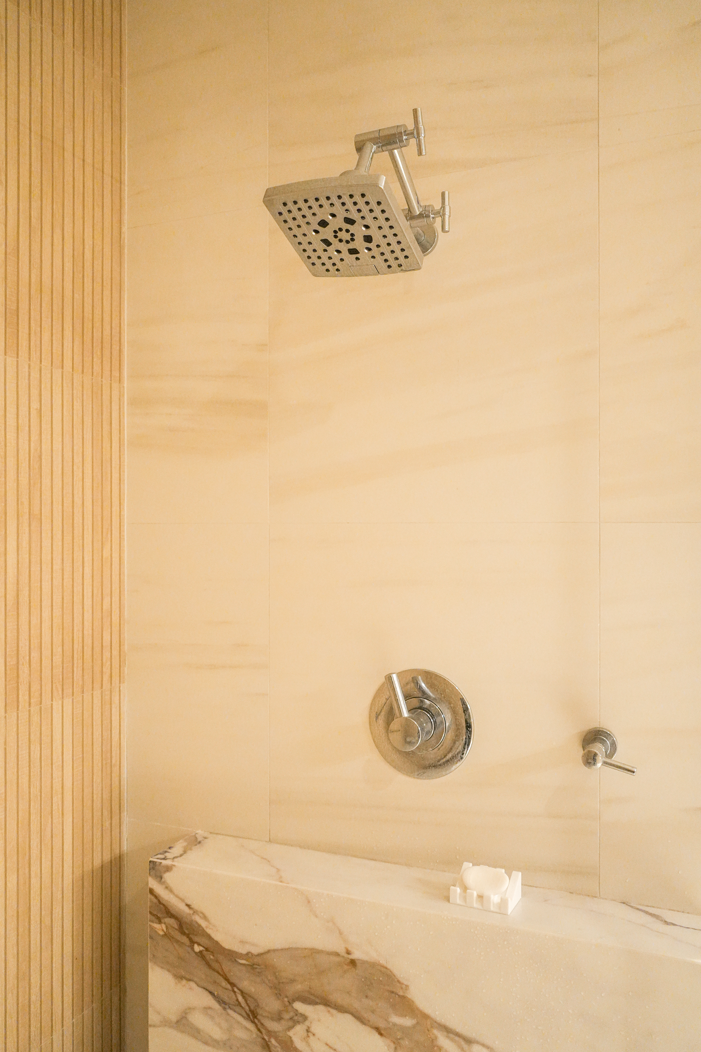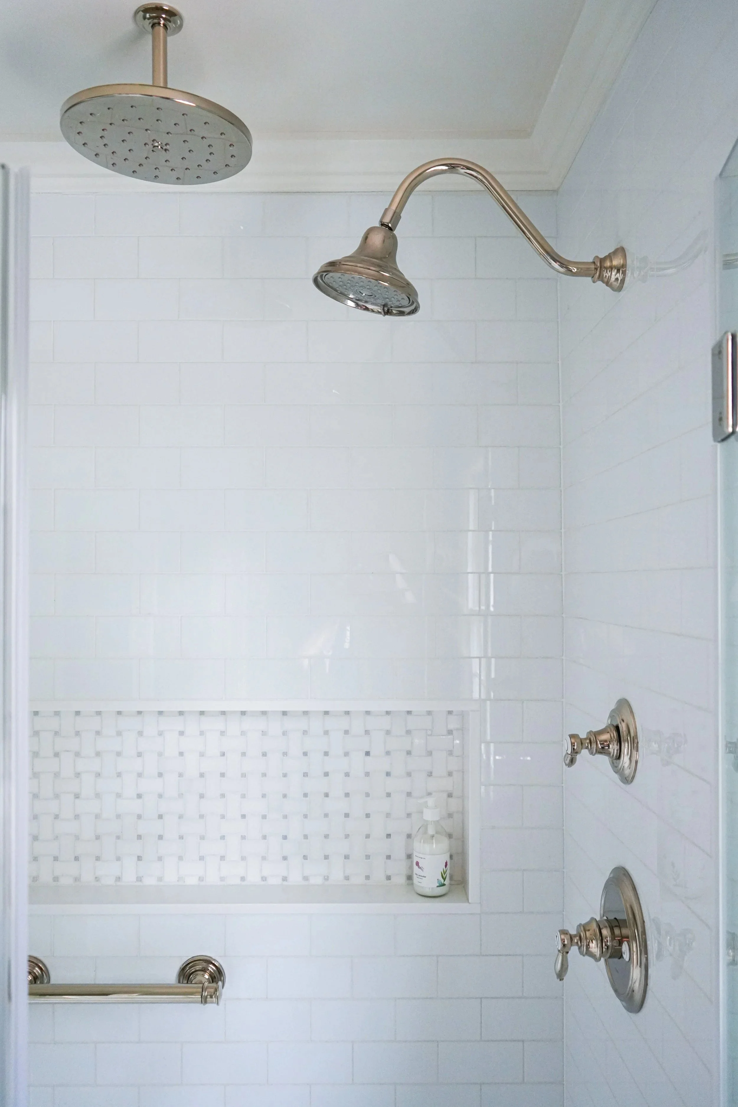 With an adjustable head, you need to be able to reach up and change the settings. I can’t reach a head that is placed at 84 inches high. Consider factors such as who will be using the head if it’s adjustable. If more than one person is using the shower, for significant height differences, consider more than one head and two different heights. You don’t want to have to be reaching on your toes to change the setting!