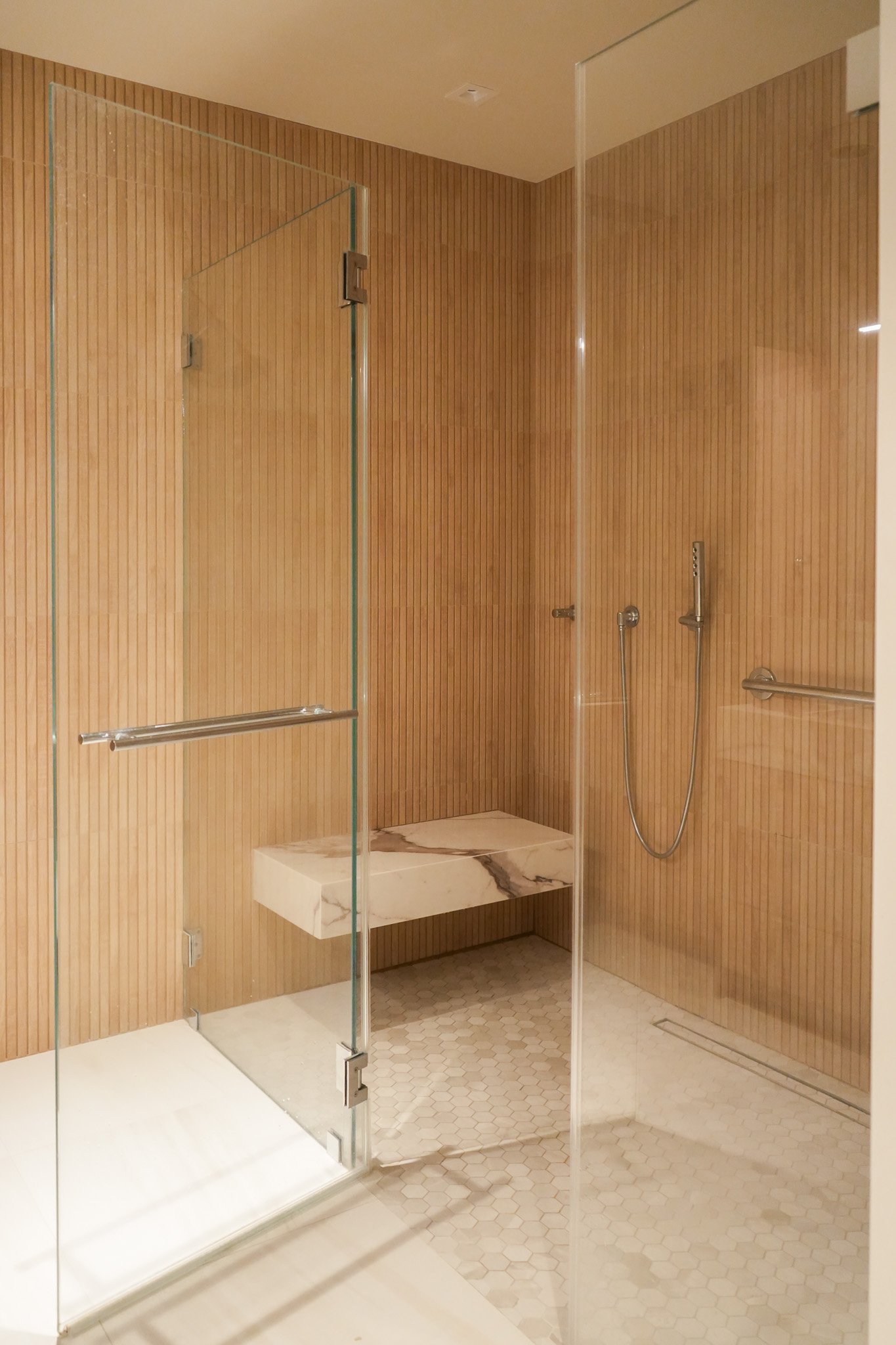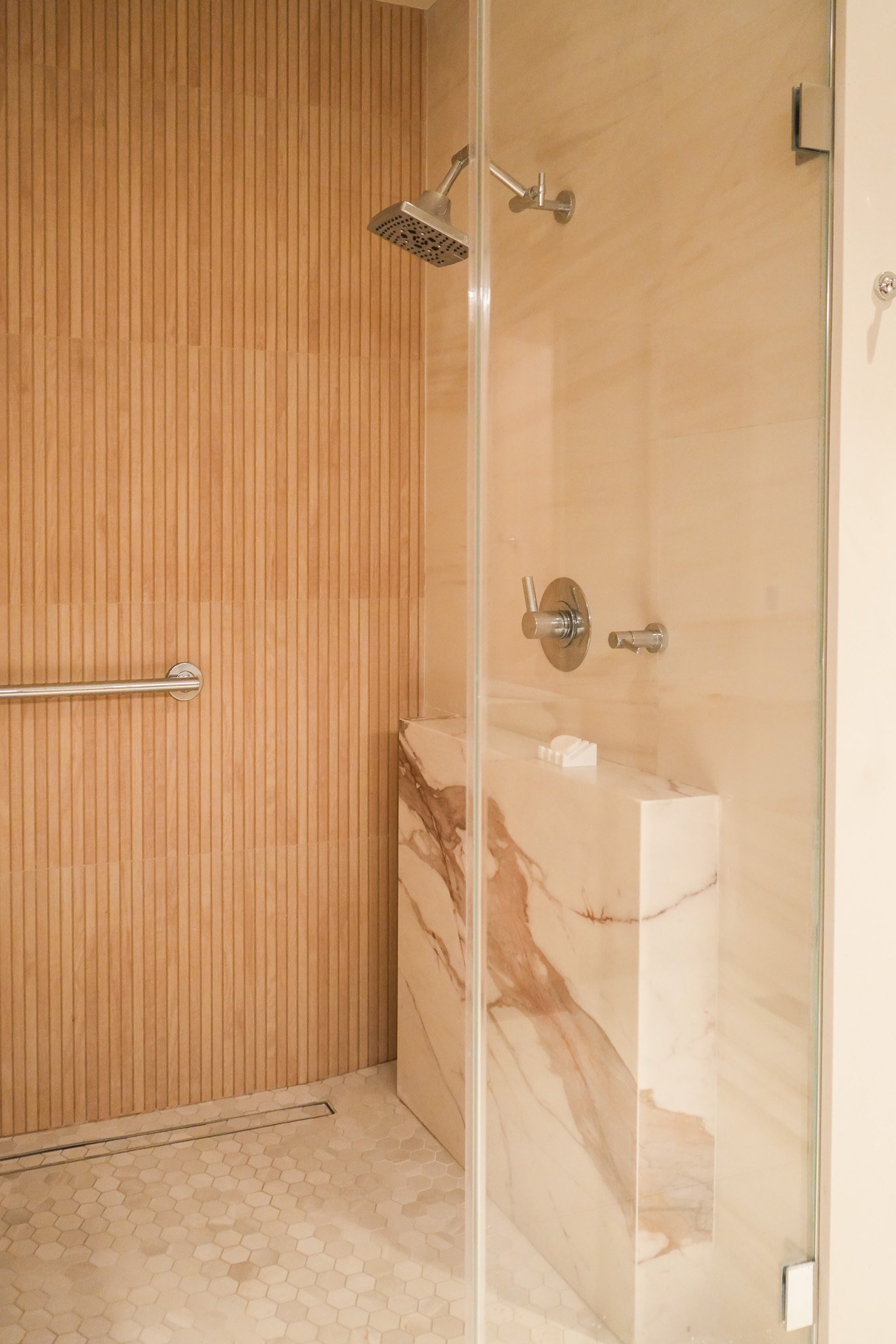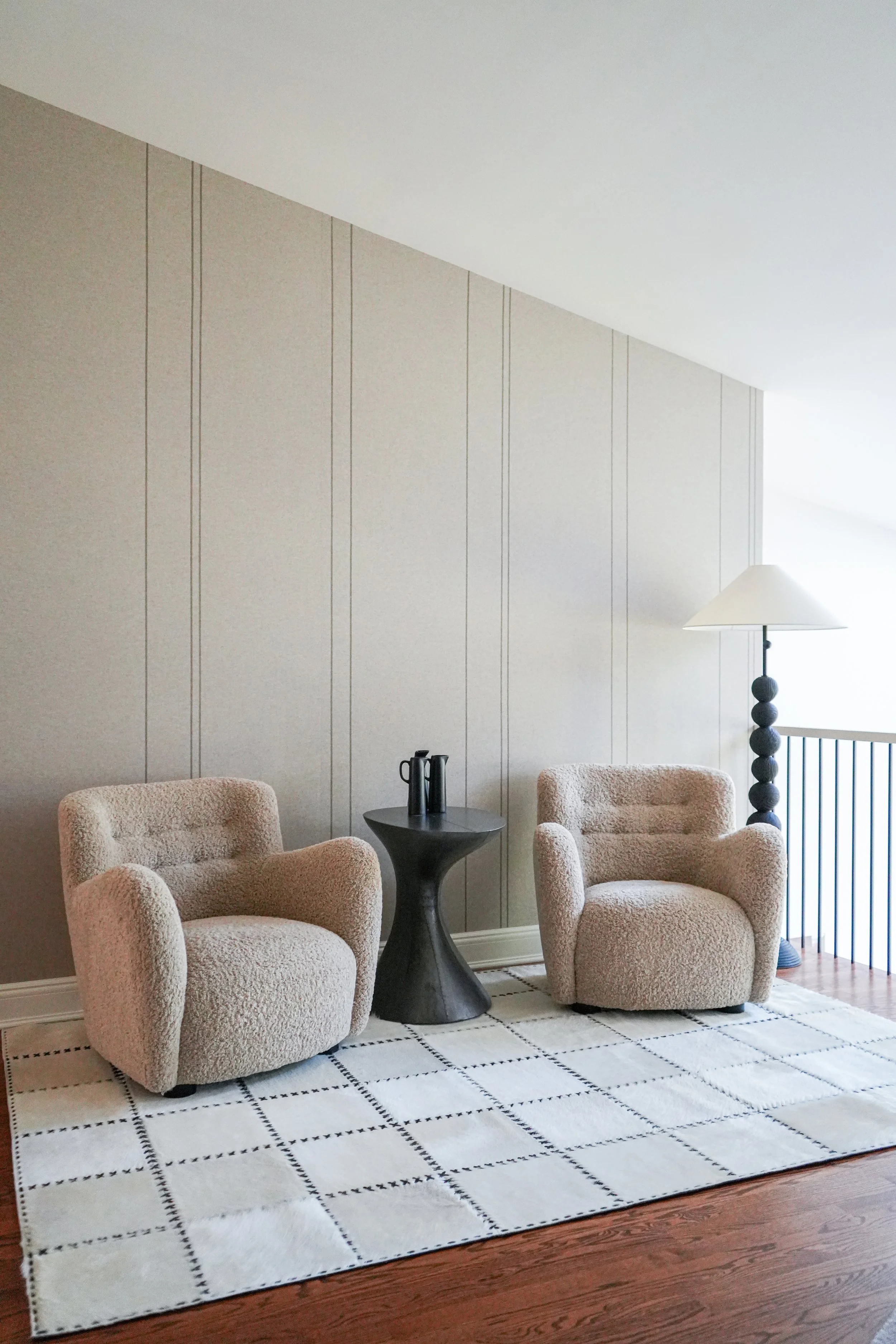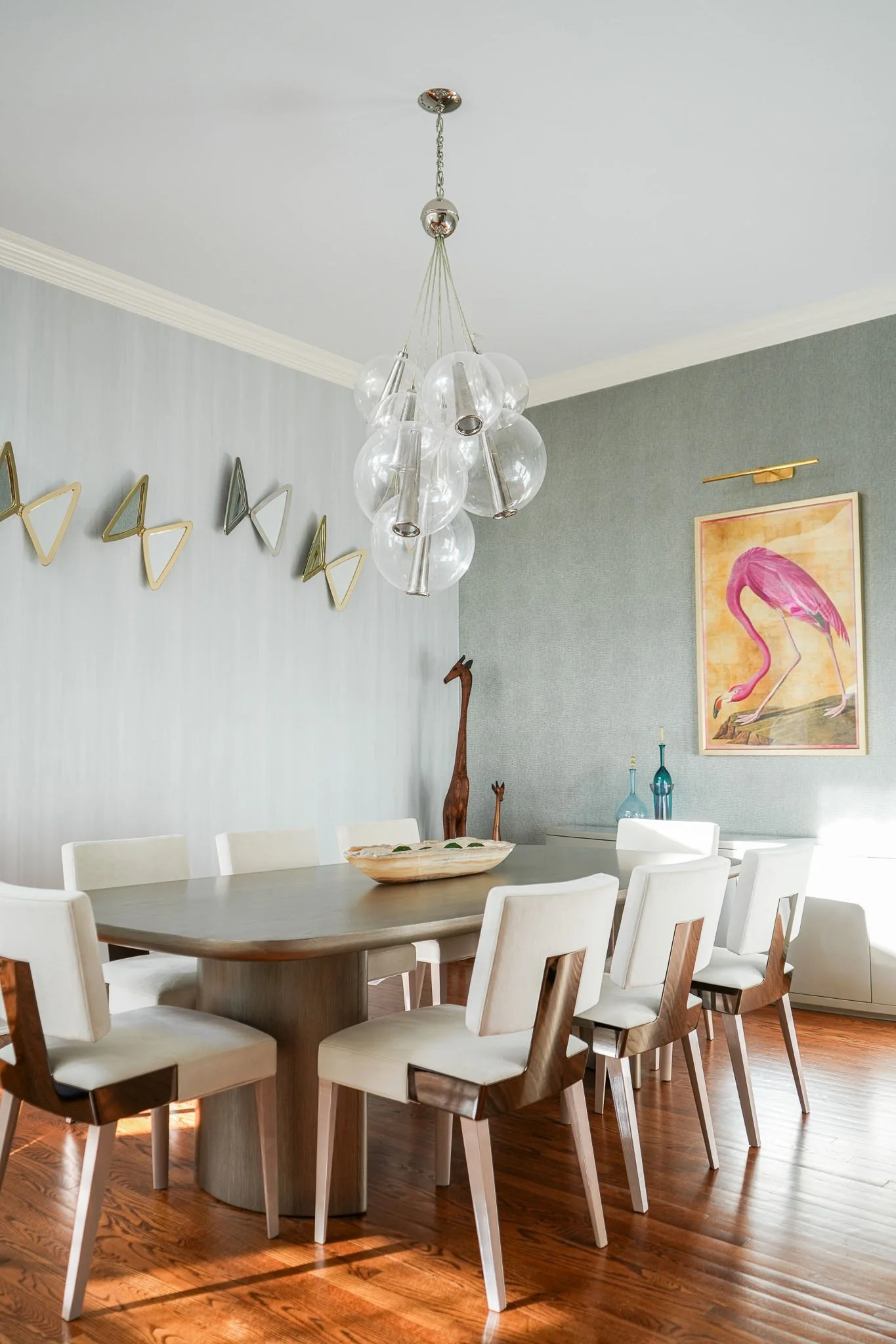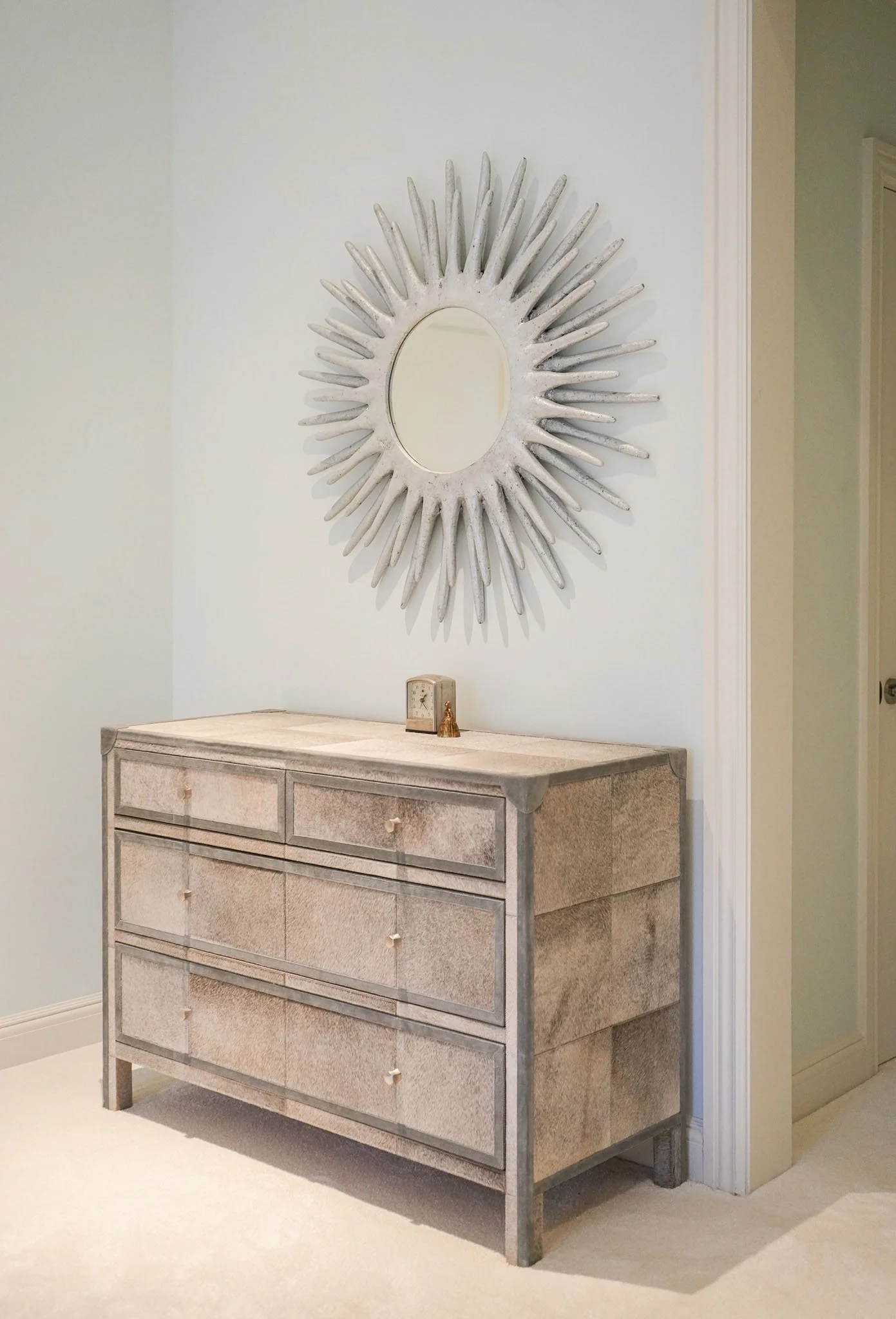 A very special finale for these clients; I know someone was watching over us. At the inception, I chose the heart-shaped ottomans in a rich violet. I designed the hand-carved fireplace surround half a year later, and found a fateful marble in lilac tones. Look closely and tell me if you see the heart — something I’ve never seen in a marble piece before. A meaningful symbol of a fresh and loving start.
