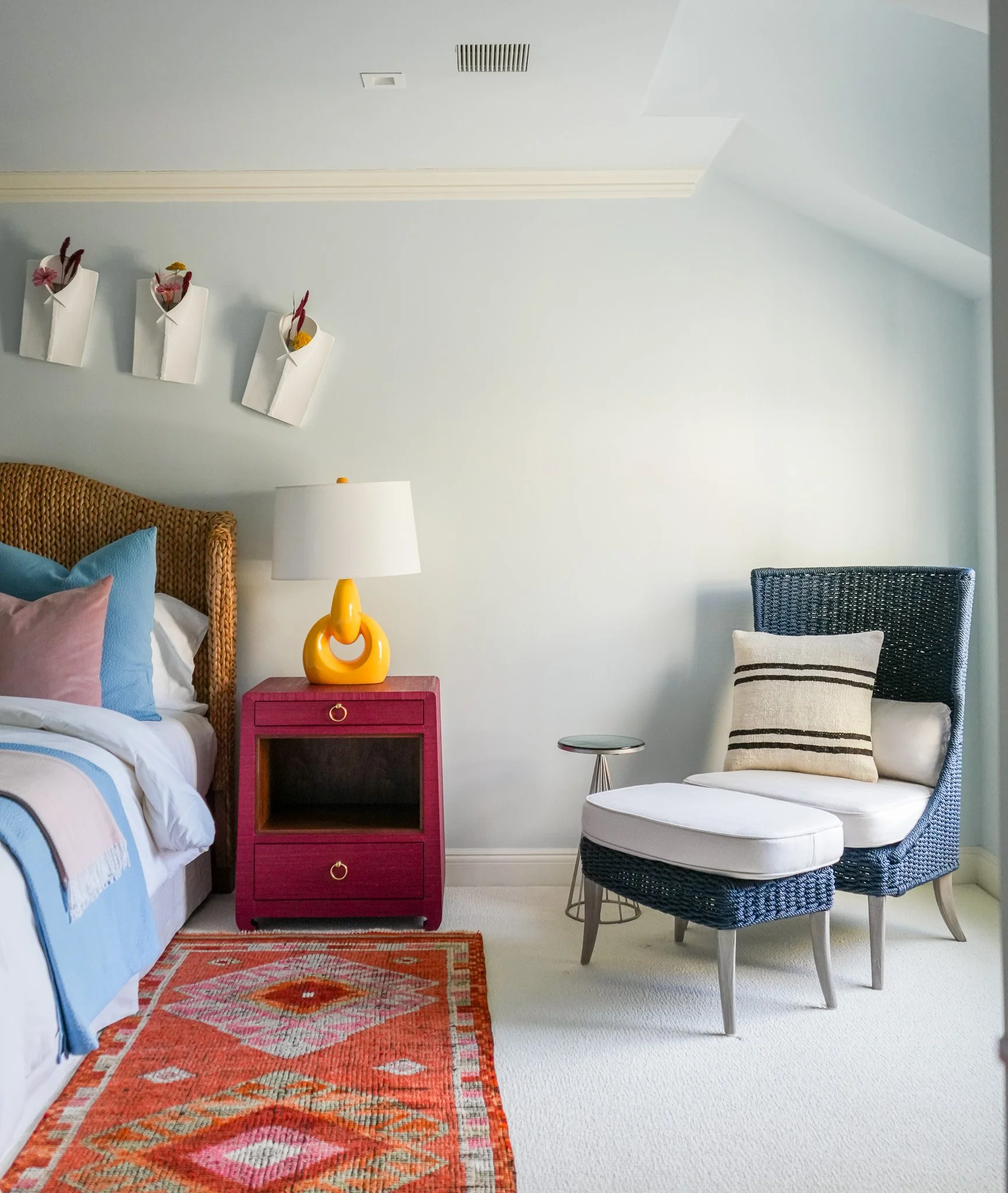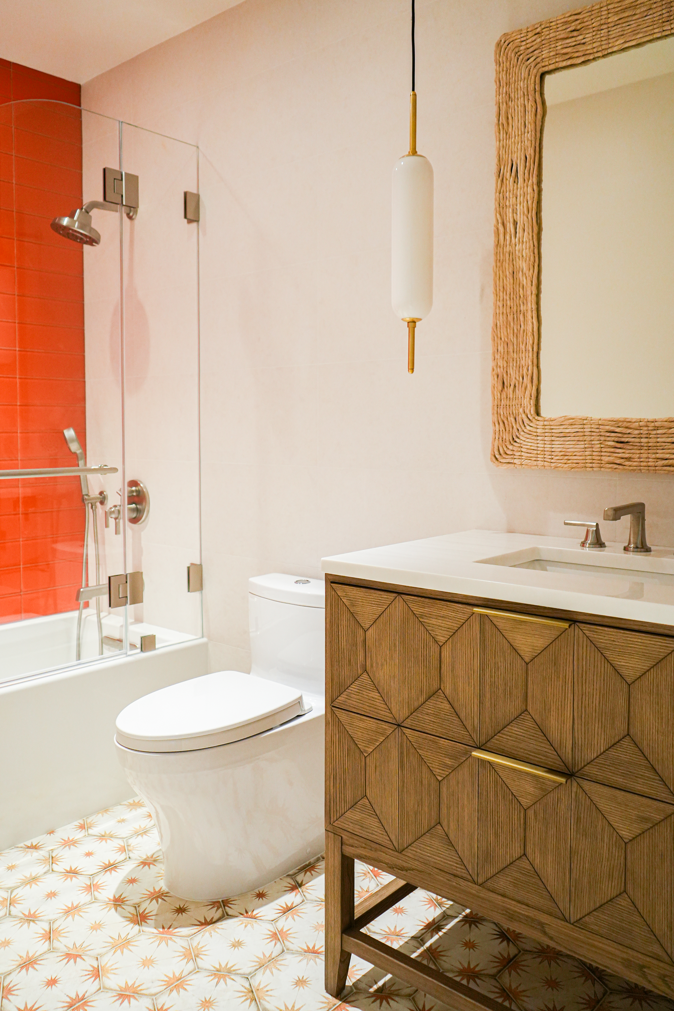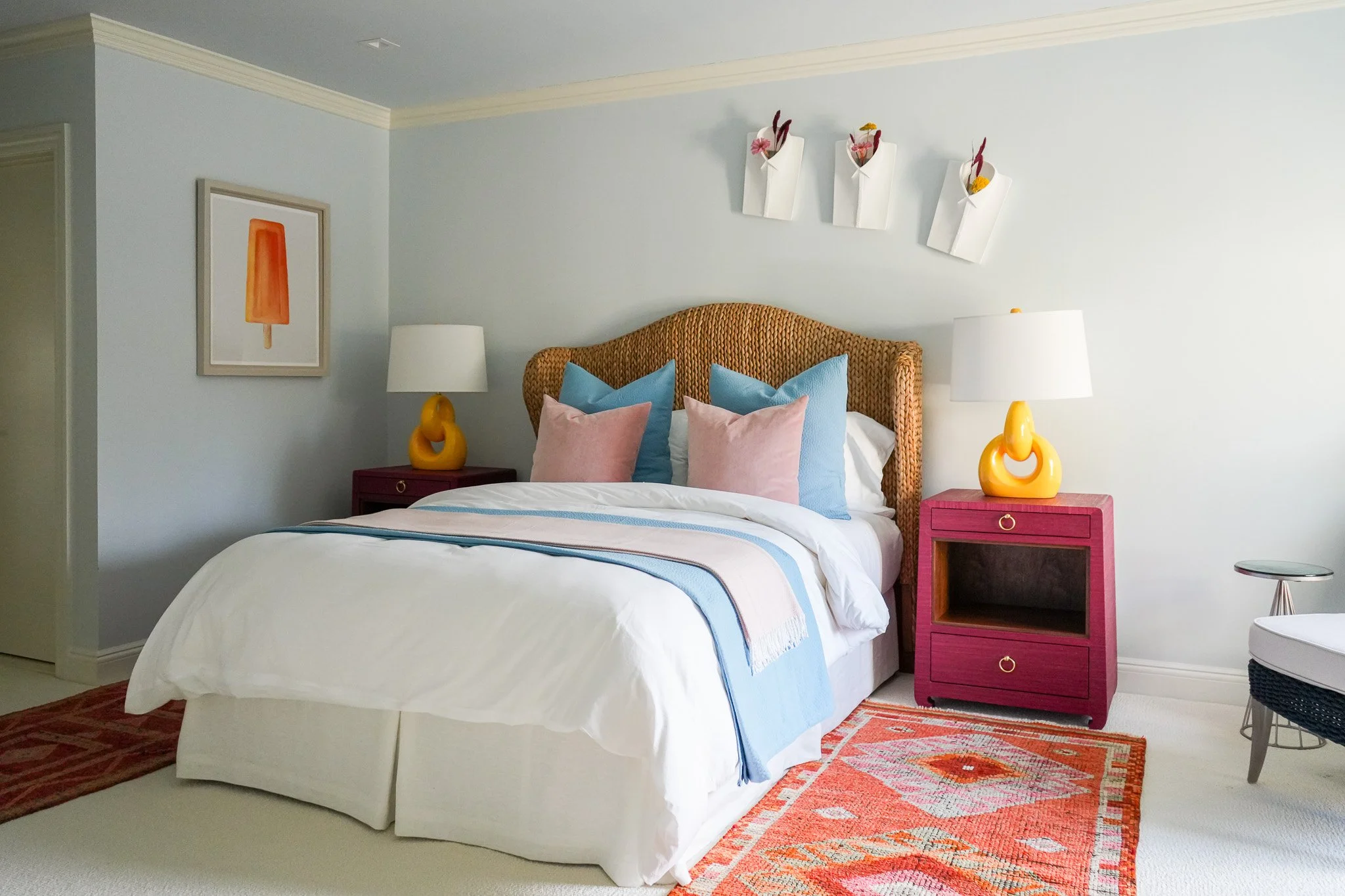 “A clean minimalistic feel can be achieved while embracing bold, vibrant colors. My mission was to create a happy, luxurious respite for clients who were forced to start over when their home burned.”