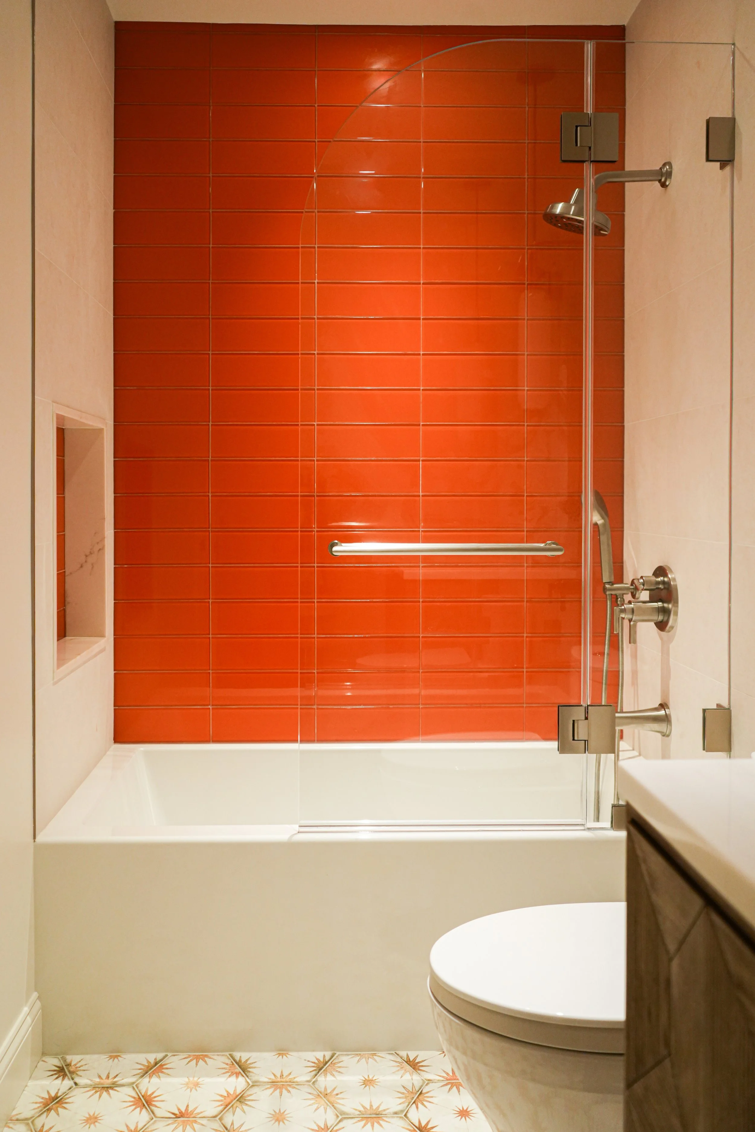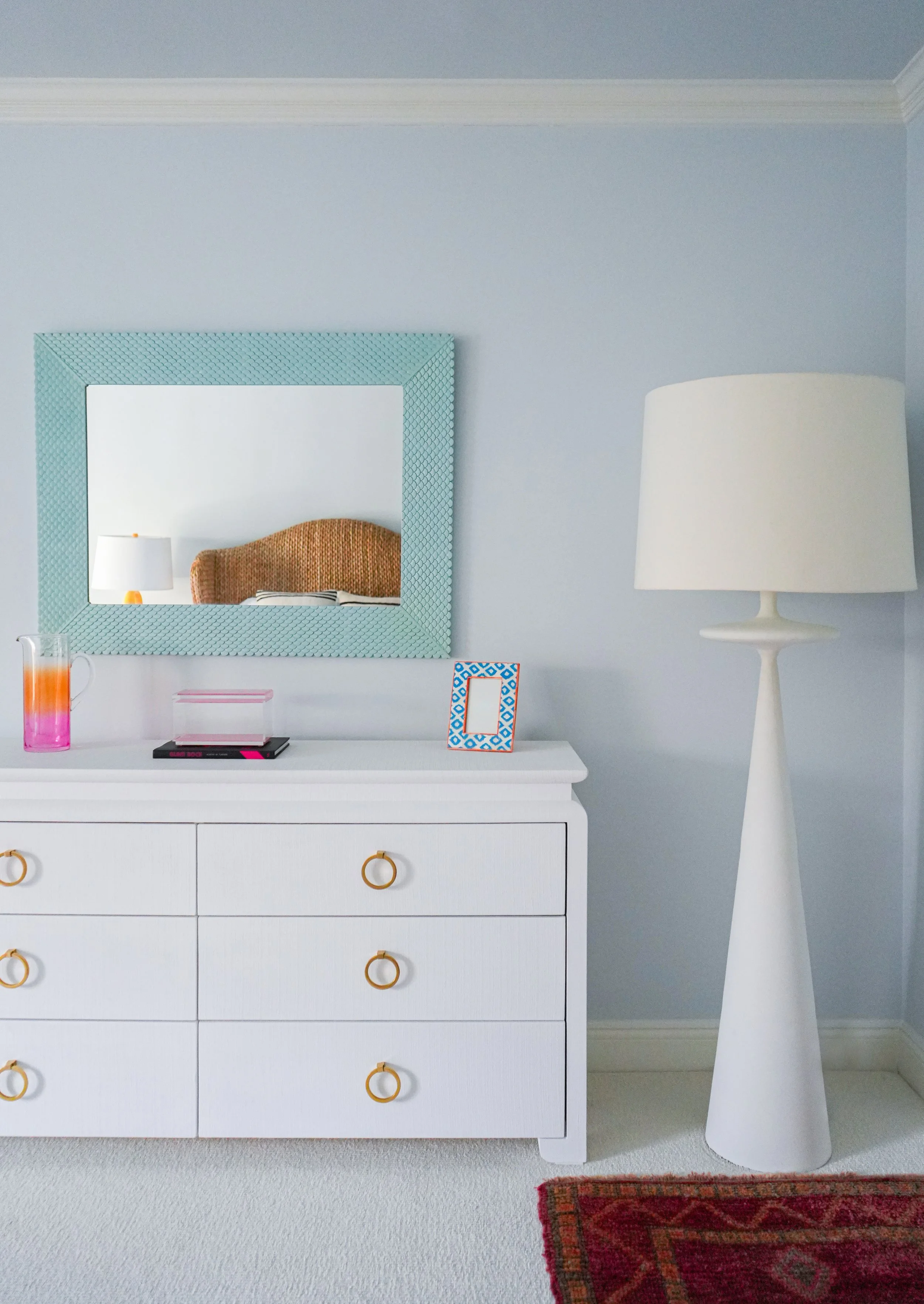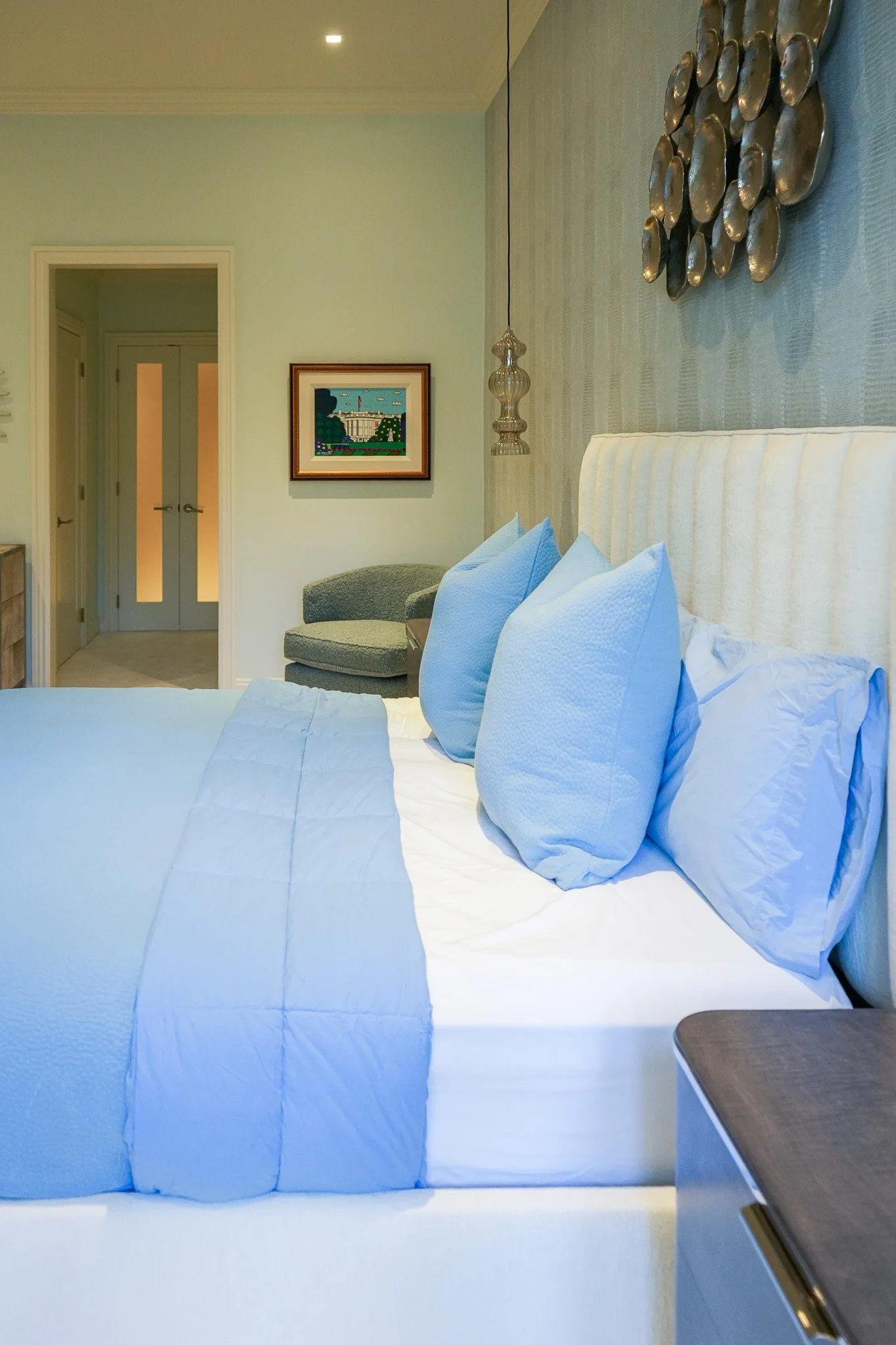 “A clean minimalistic feel can be achieved while embracing bold, vibrant colors. My mission was to create a happy, luxurious respite for clients who were forced to start over when their home burned.”