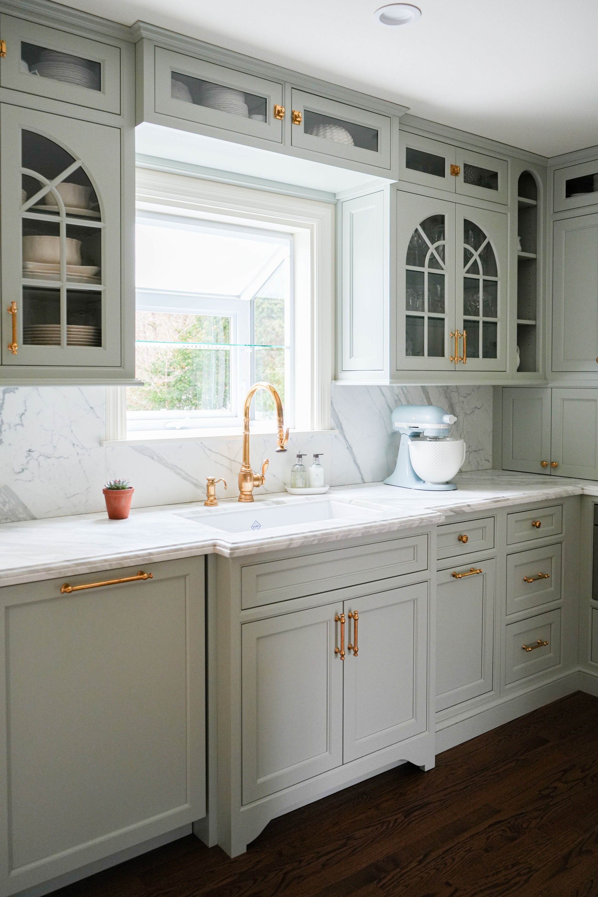 “I worked with Sharon and her team on a gut renovation of my kitchen and update of my adjacent dining space. Sharon is an expert at kitchens and works with suppliers and contractors of the highest quality. She understood my style and what I was looking for, and helped me customize every aspect of the design. The cabinetry is outstanding quality and I was able to use a custom paint color. She even found an antique Swedish credenza to coordinate with my new cabinets that was exactly what I was looking for. And she helped me design a custom-sized dining table to fit my dining area. We love our new kitchen and dining room!”